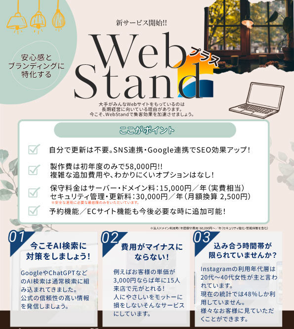 そんな方々のために、『安心感』と『ブランディング』に特化した。コスパの合うホームページをご用意いたしました。