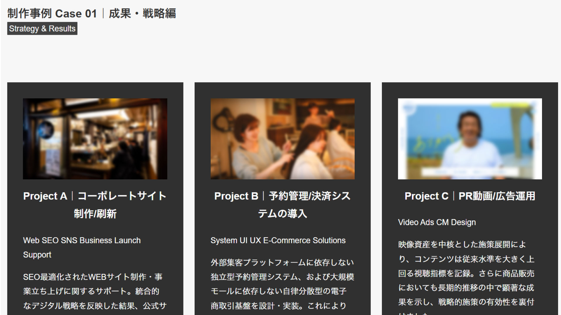 検索上位にする対策はもちろん、コマーシャル動画制作、画像制作、